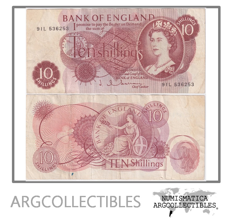 Inglaterra Billete 10 Shillings 1960 P-373b VF