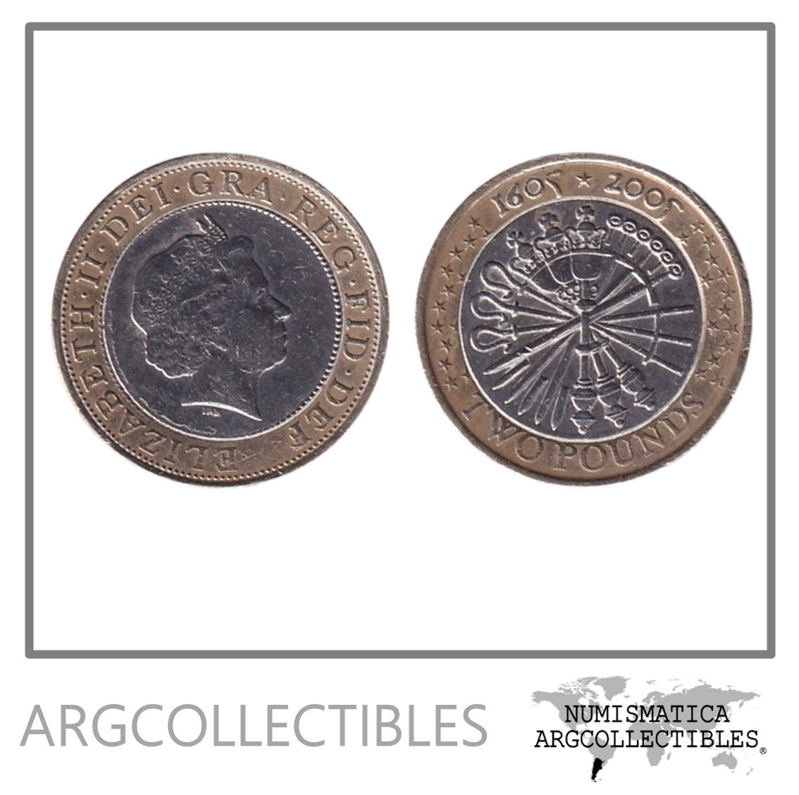 Inglaterra Moneda 2 Pounds 2005 Bimetalica 400 Aniversario Campo de Polvora KM-1052 VF+