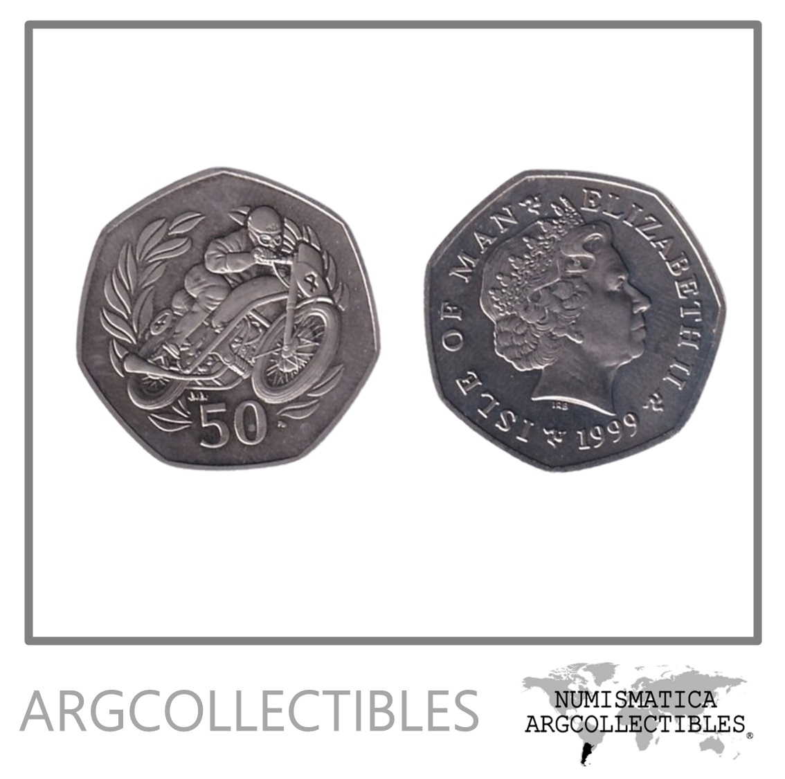 Isla De Man Moneda 50 Pence Año 1999 50º Motociclista Km 993 Unc