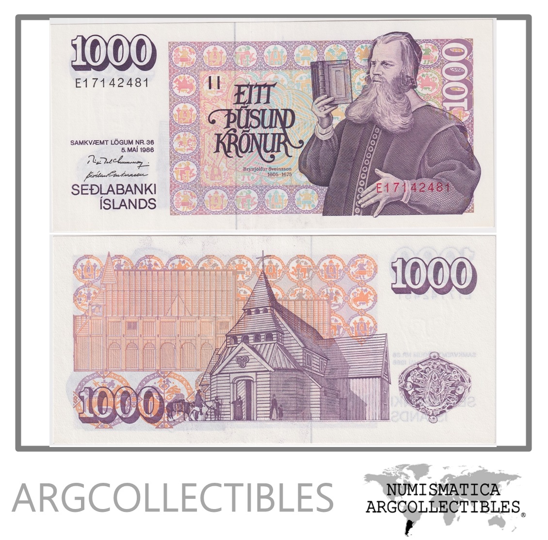 Islandia Billete 1.000 Kronur 1986 P-56 UNC
