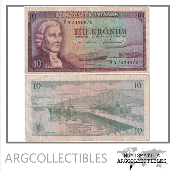 Islandia Billete 10 Kronur 1961 P-42 VF