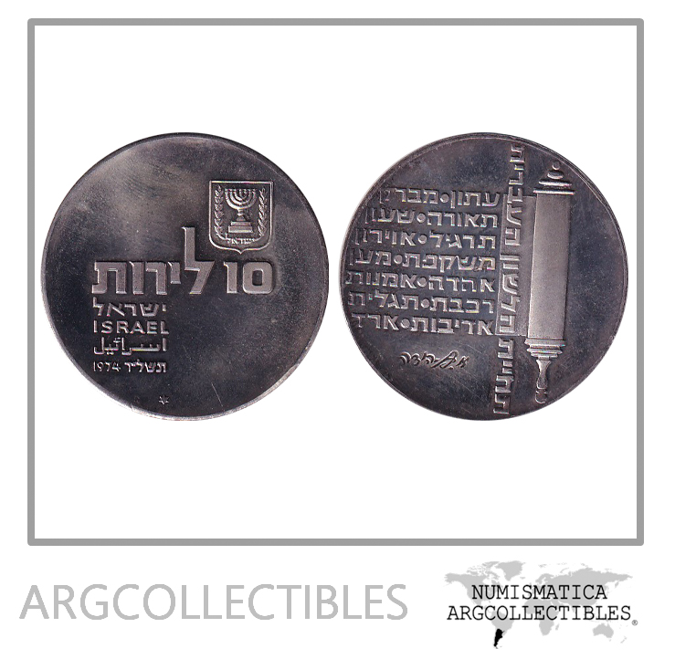 Israel Moneda 10 Lirot 1974 Plata 900 26 Aniv Independencia KM-77 UNC