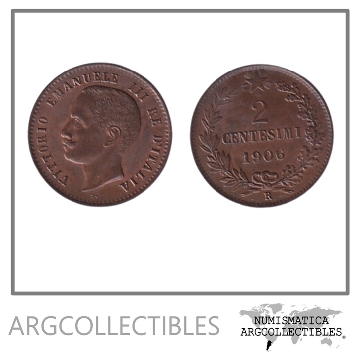 Italia Moneda 2 Centesimos 1906 Vittorio Emanuele III Bronce KM-38 AU