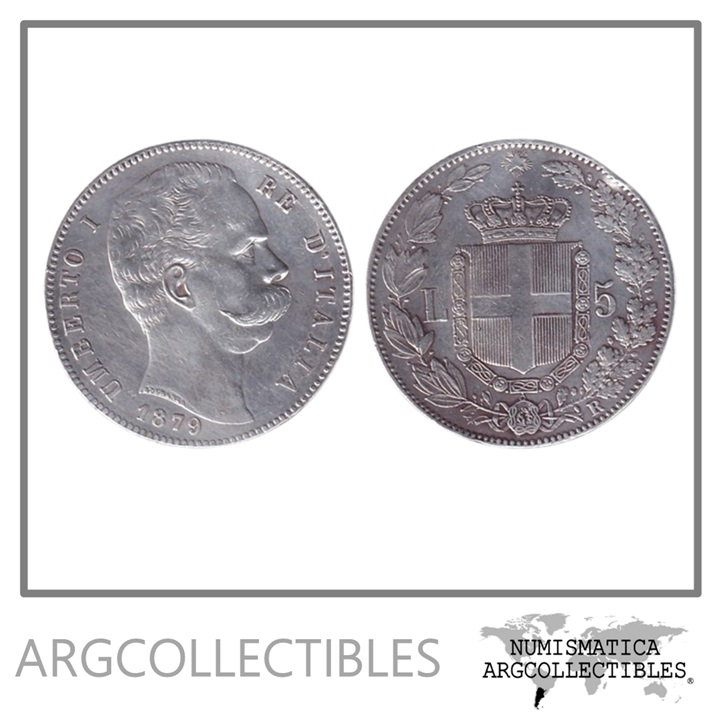 Italia Moneda 5 Liras 1879 R Plata 900 Umberto I KM-20 VF+