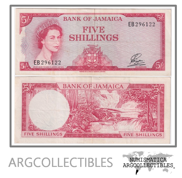 Jamaica Billete 5 Shillings 1961 P-49 VF+