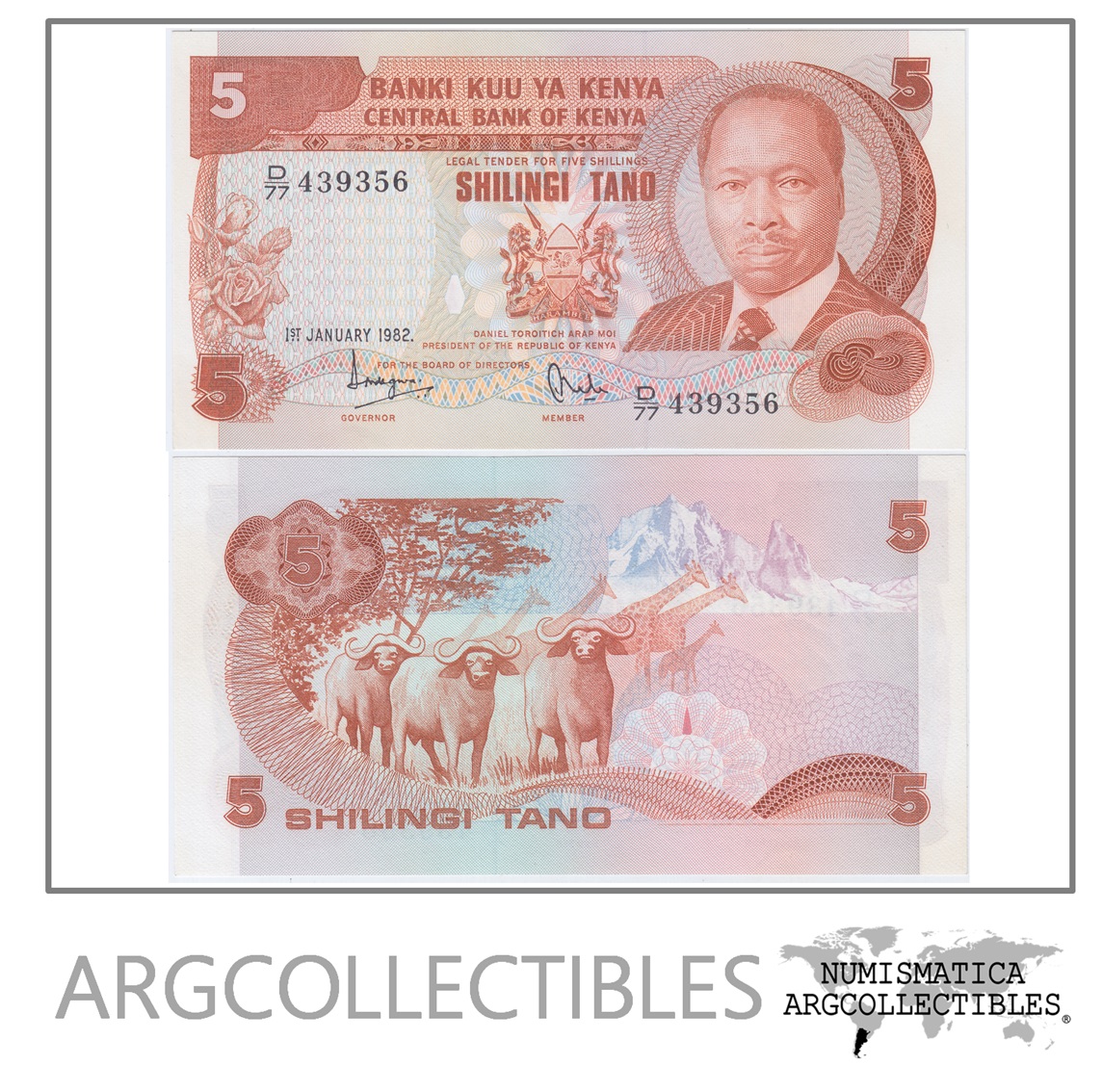 Kenia Billete 5 Shilingi Año 1982 P-19b Unc