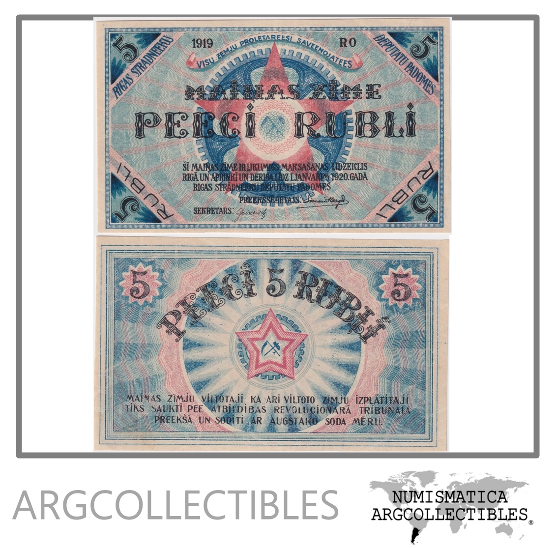 Letonia Billete 5 Rubli 1920 P-R3 UNC
