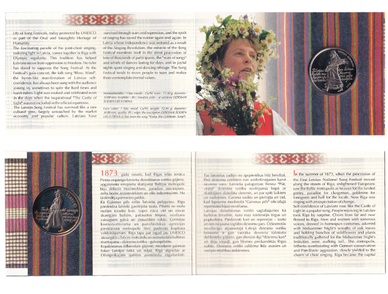 Letonia Moneda 1 Lats 2008 Niquel Festival de la Cancion KM-93 Proof