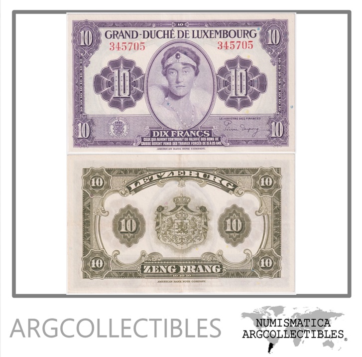 Luxemburgo Billete 10 Francos 1944 P-44 XF