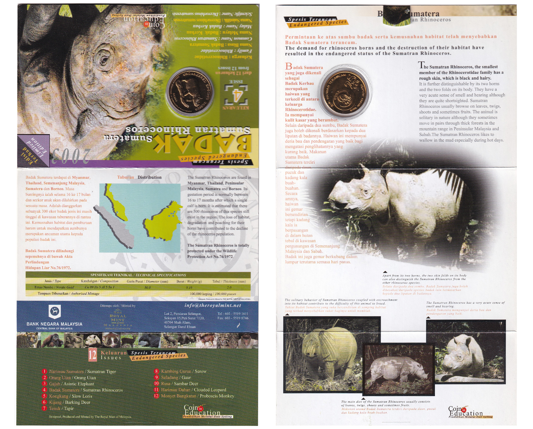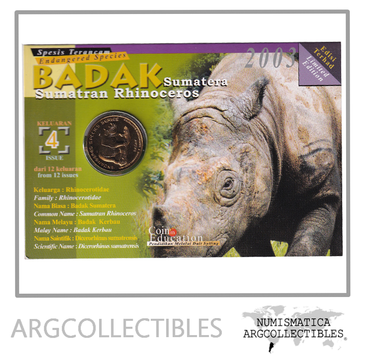 Malasia Moneda 25 Sen (Rinoceronte) 2003 KM-77 Laton Blister UNC
