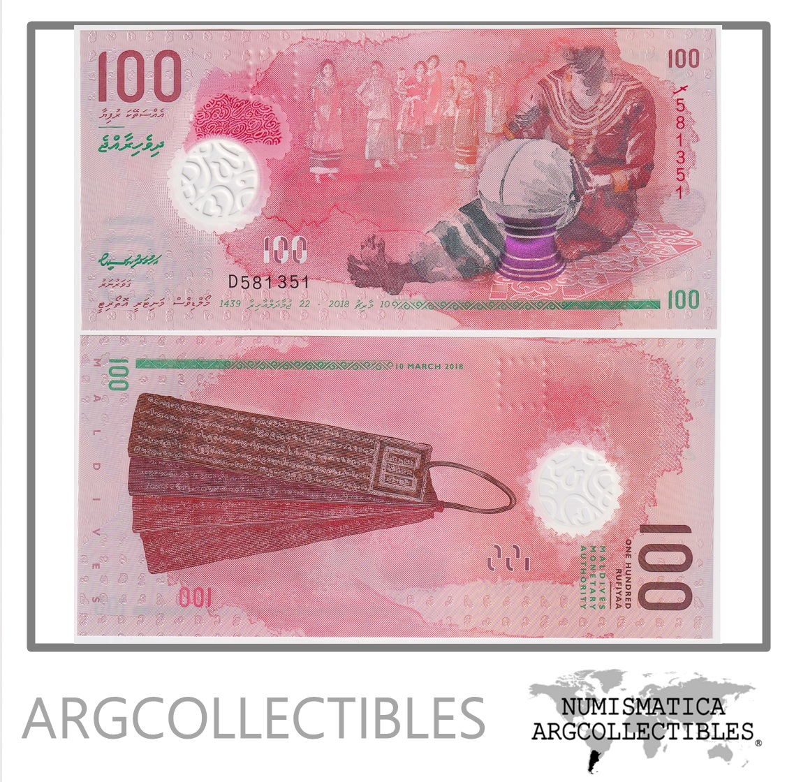 Maldivas Billete 100 Rufiyya 2018 P-29 UNC (Polimero)