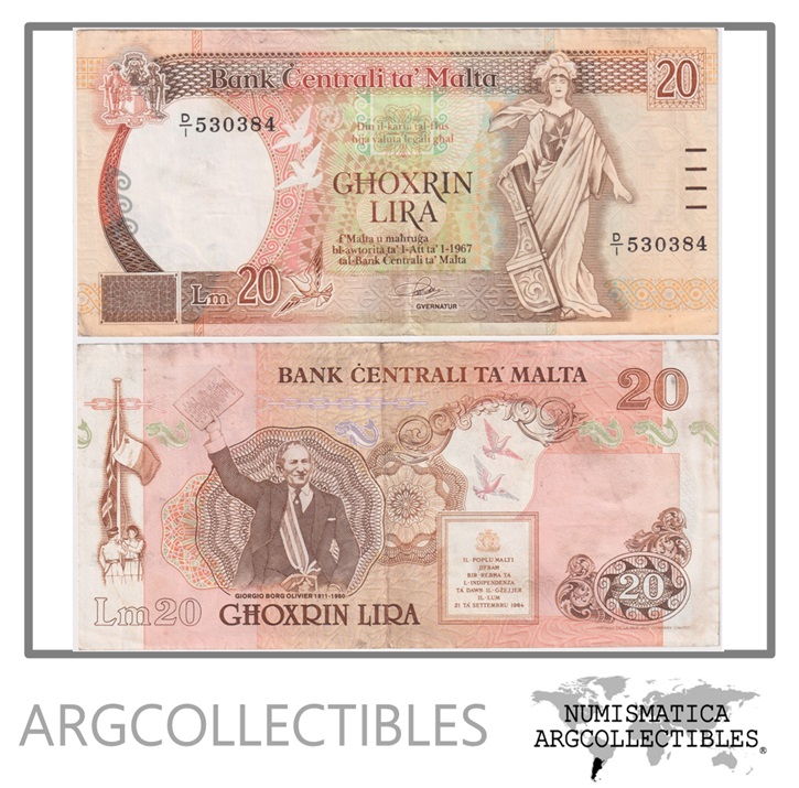 Malta Billete 20 Liri 1989 P-44 VF