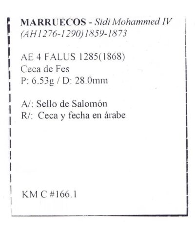 Marruecos Moneda Ae 4 Falus 1859 1873 Sidi Mohammed Iv M21.1