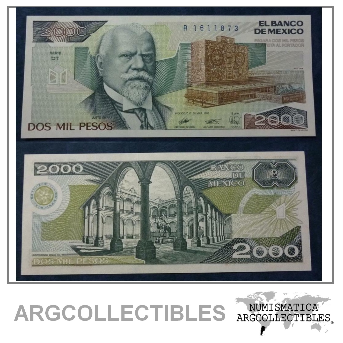MEXICO Billete 2000 Pesos, Pick 86 UNC 1989