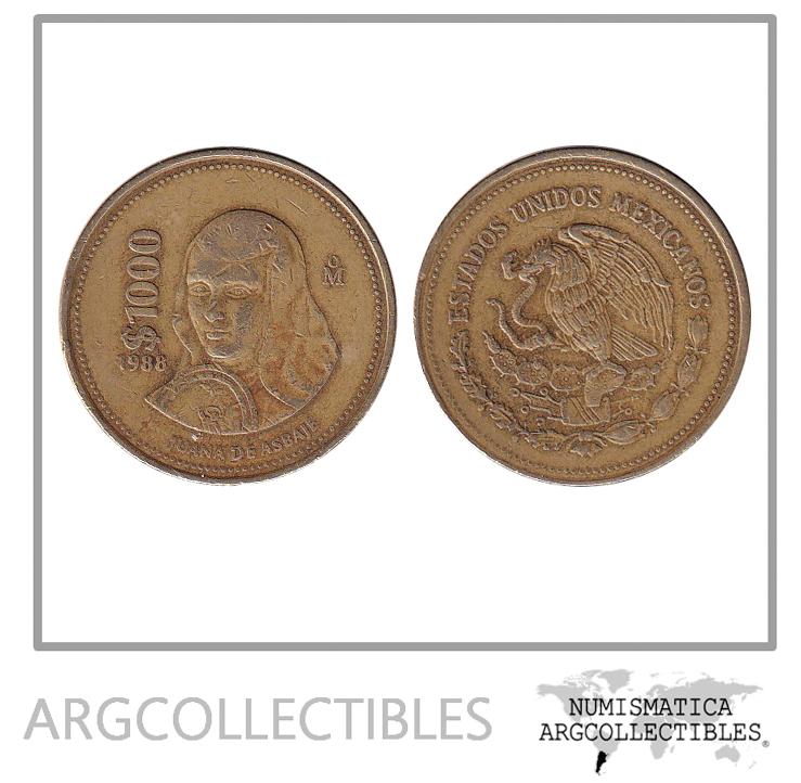 Mexico Moneda 1000 Pesos 1988 Juana de Asbaje Bronce KM-536 VF