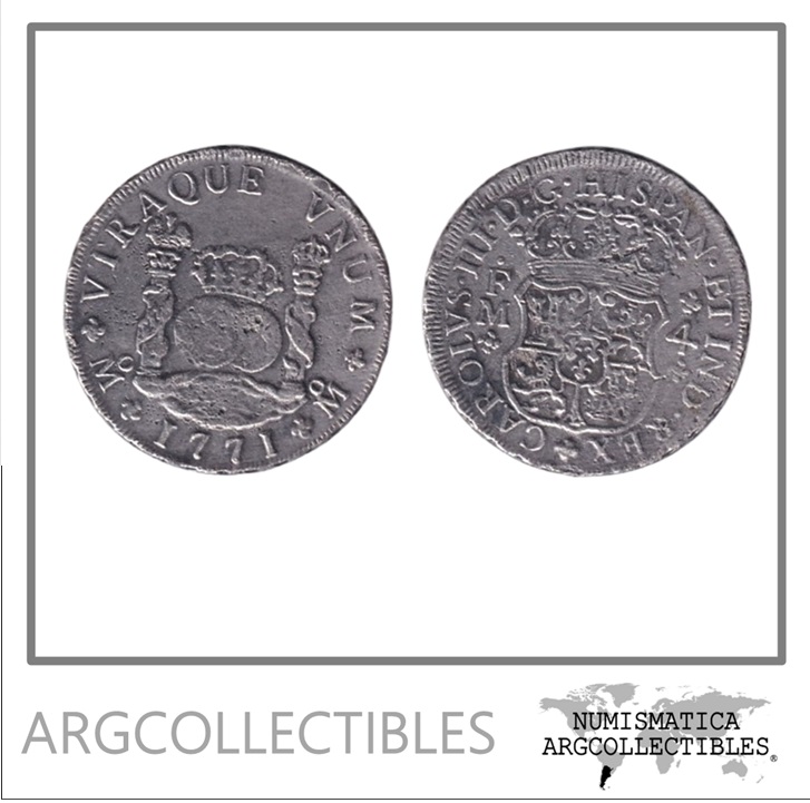 Mexico Moneda 4 Reales 1771 Mo FM Plata 917 KM-96 Carlos III Columnaria VF (Corrocion)