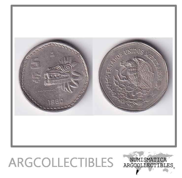 Mexico Moneda 5 Pesos 1980 Niquel Quetzalcoatl KM-685 AU