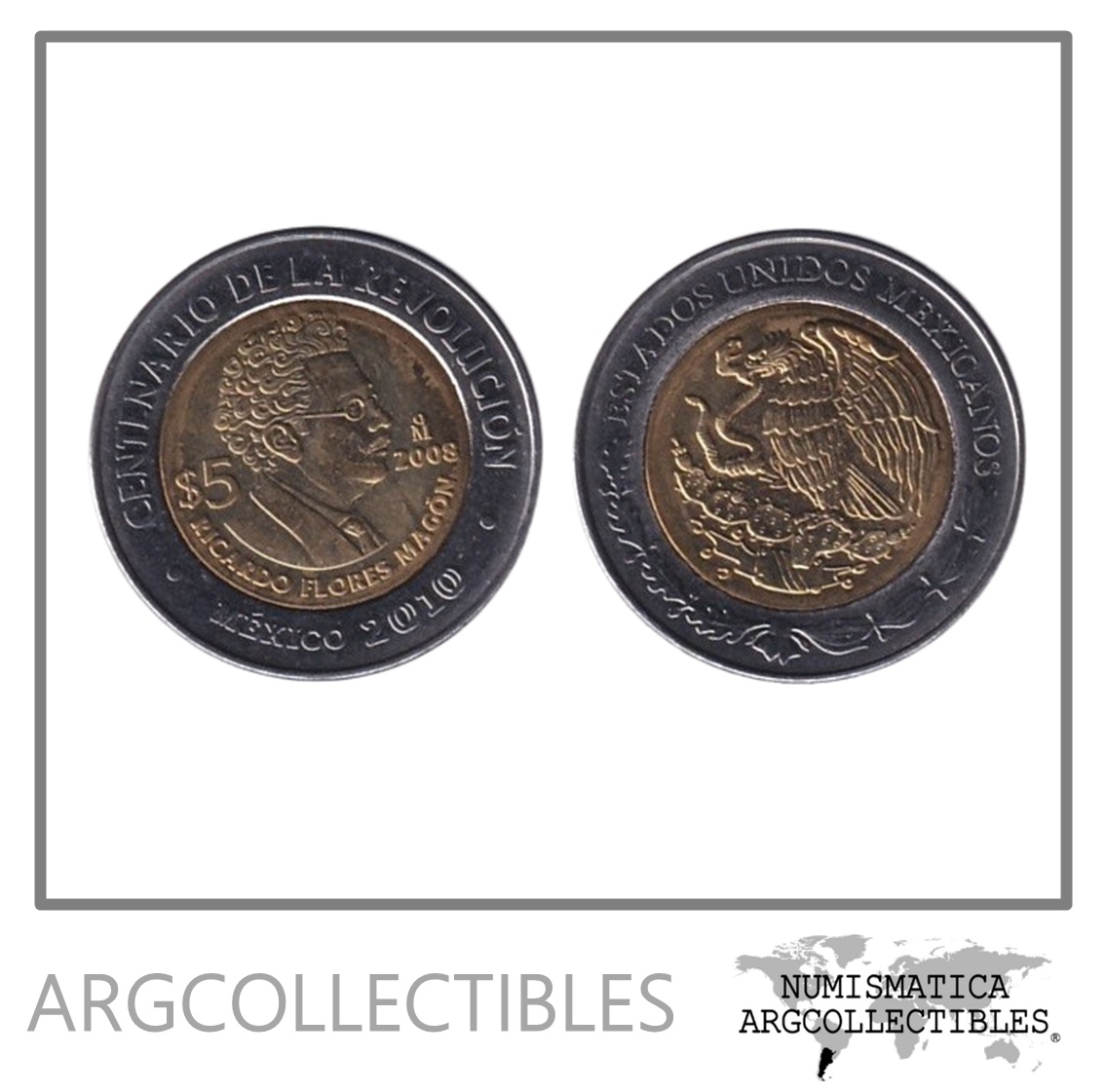 Mexico Moneda 5 Pesos 2008 Bimetalica Ricardo Flores Magon KM-903 UNC