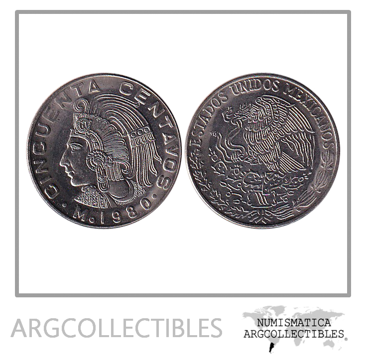 Mexico Moneda 50 Centavos 1980 Niquel KM-452 Cuatemoc UNC