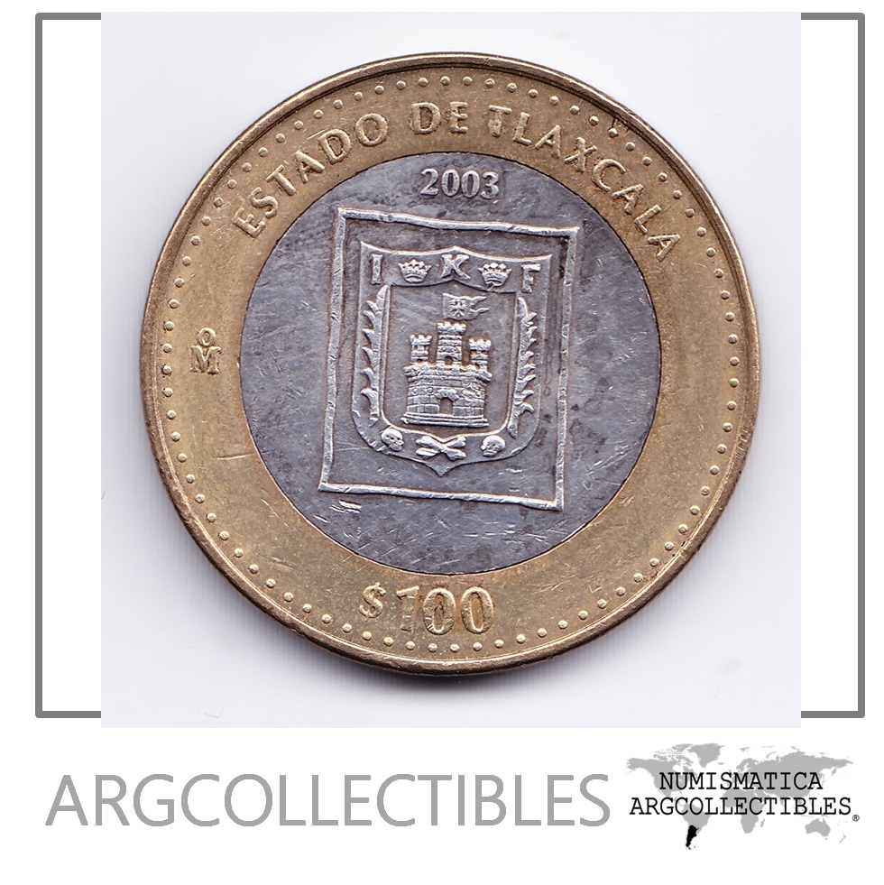 Mexico Tlaxcala 100 Pesos Año 2003 Bimetalica Plata Km 691 Condicion Au