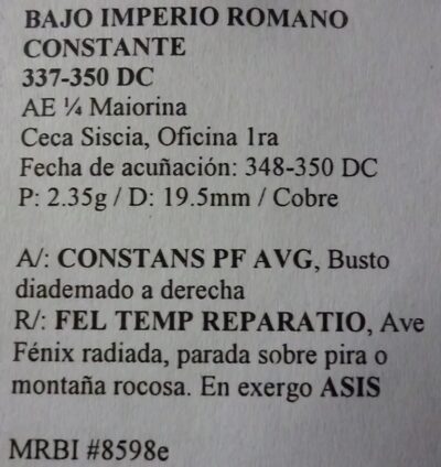 Roma Ae 1/4 Maiorina Ceca Siscia Año 348 Dc Emperador Constante Aa63