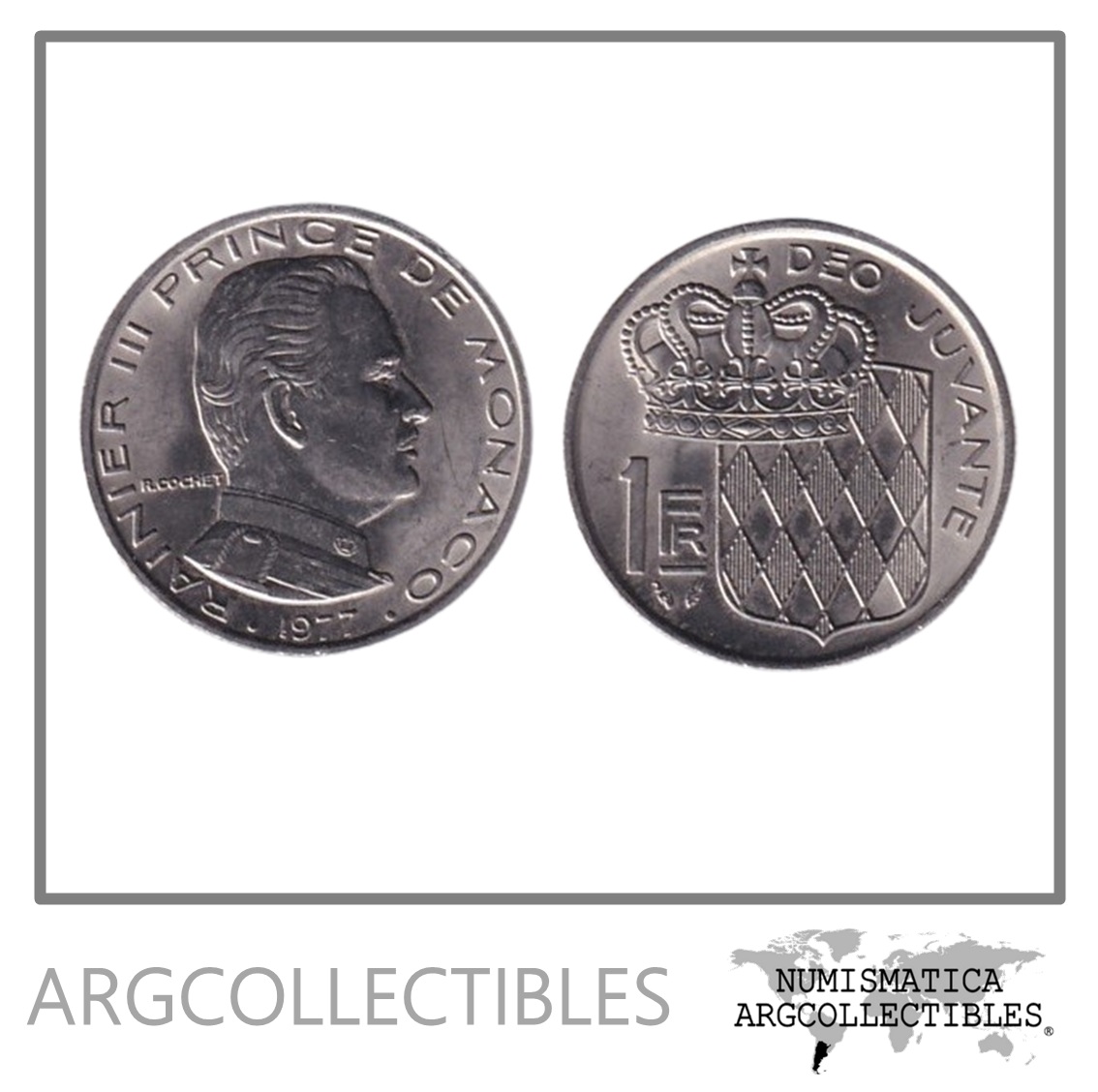 Monaco Moneda 1 Franco 1977 Rainiero III Niquel KM-140 AU