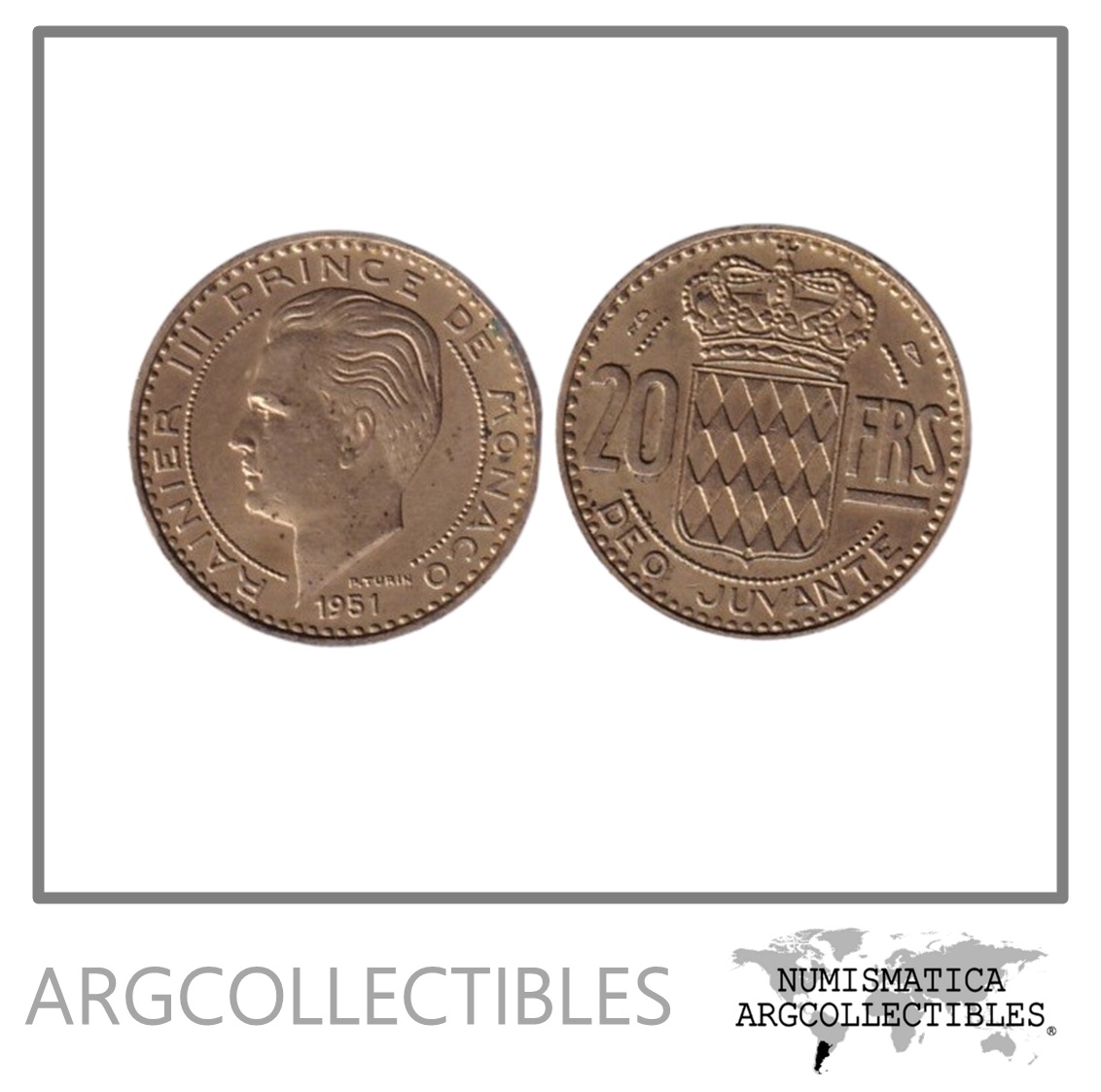 Monaco Moneda 20 Centimos 1951 Rainiero III Laton KM-131 XF+