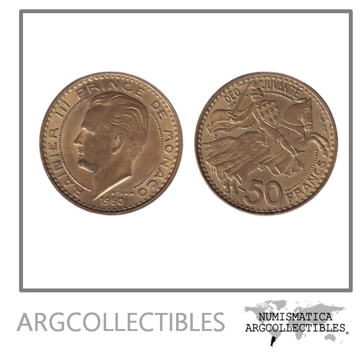 Monaco Moneda 50 Francos 1950 Bronce KM-132 AU
