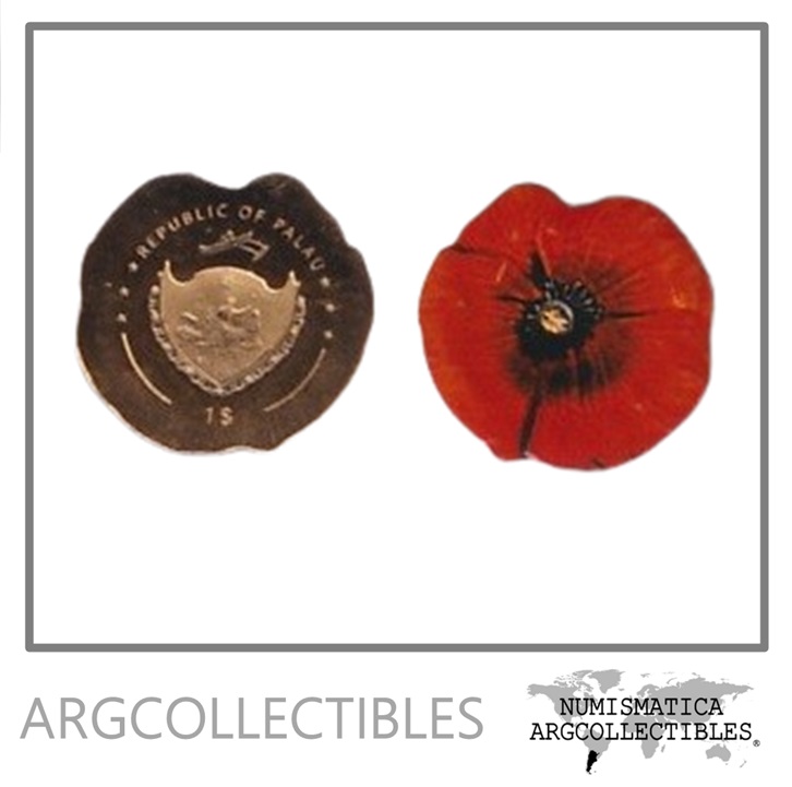Palau Moneda 1 Dolar 2008 Flor Amapola Esmaltada Oro KM-161 Proof