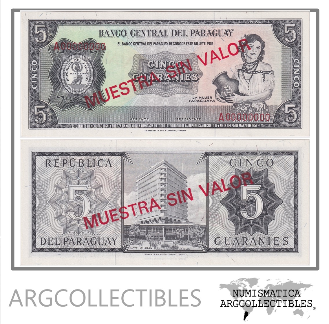 Paraguay Billete 5 Guaranies 1963 P-195bs UNC (Specimen)