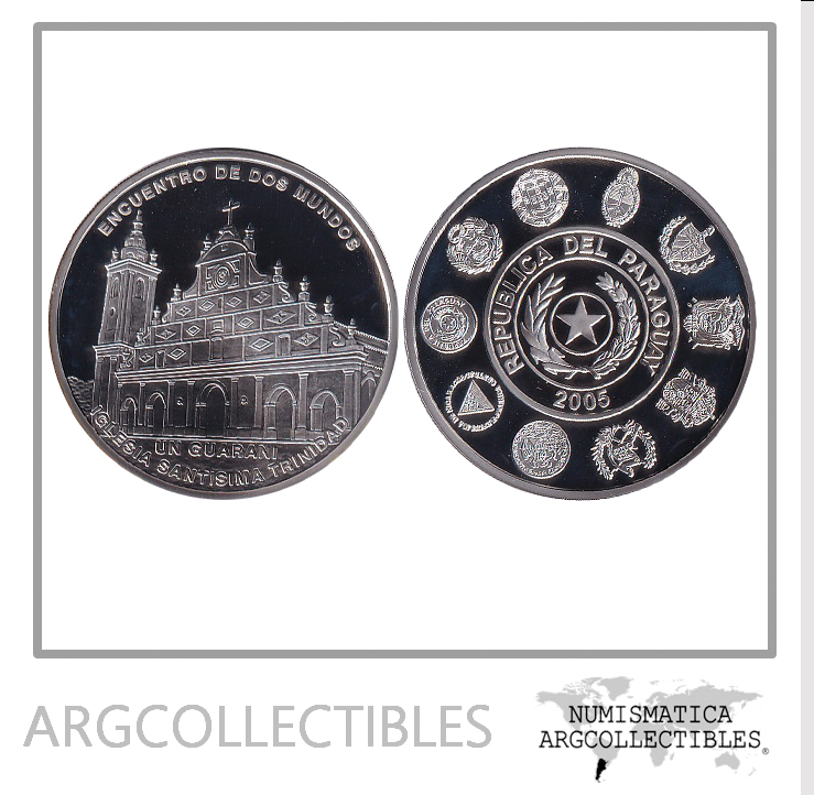 Paraguay Moneda 1 Guarani 2005 Plata 925 Iberoamericana VI Iglesia Santisima Trinidad KM-204 Proof