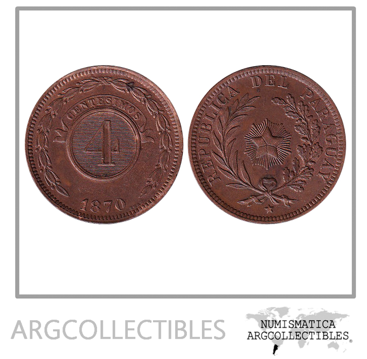 Paraguay Moneda 4 Centesimos 1870 Copper KM-4.1 AU