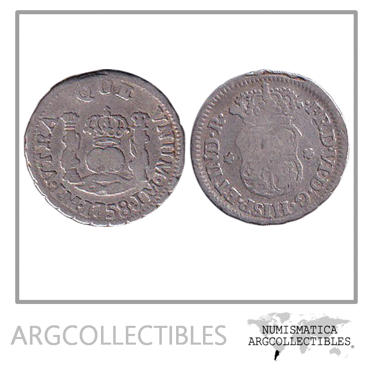 Peru Moneda 1/2 Real 1758 JM Plata Columnaria-Fernando VI VF-