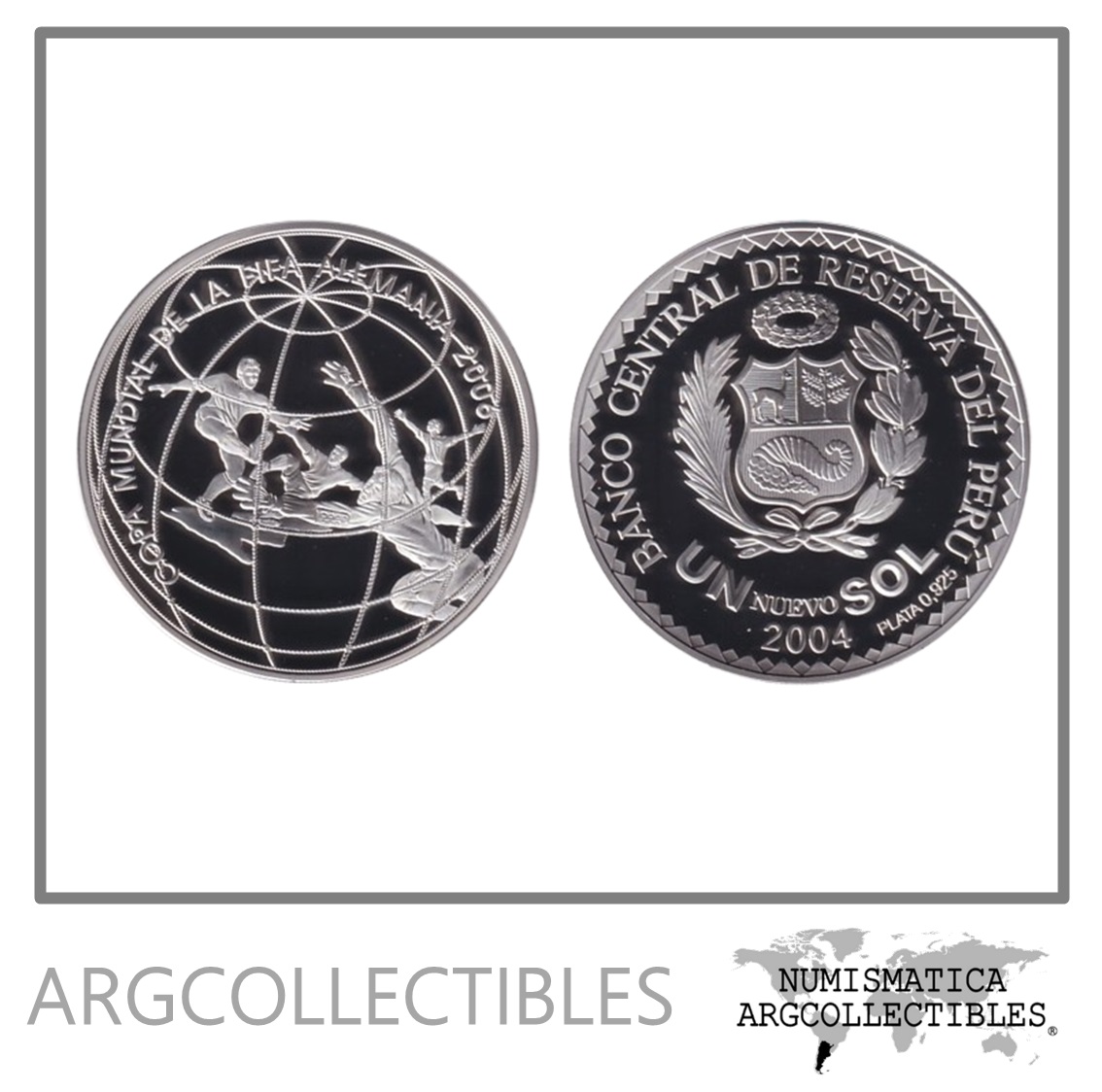 Peru Moneda 1 Sol 2004 Plata 925-27gr Mundial Futbol Alemania 2006 KM-335 Proof