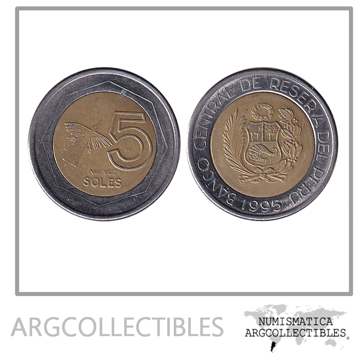 Peru Moneda 5 Nuevos Soles 1995 Bimetalica KM-316 AU