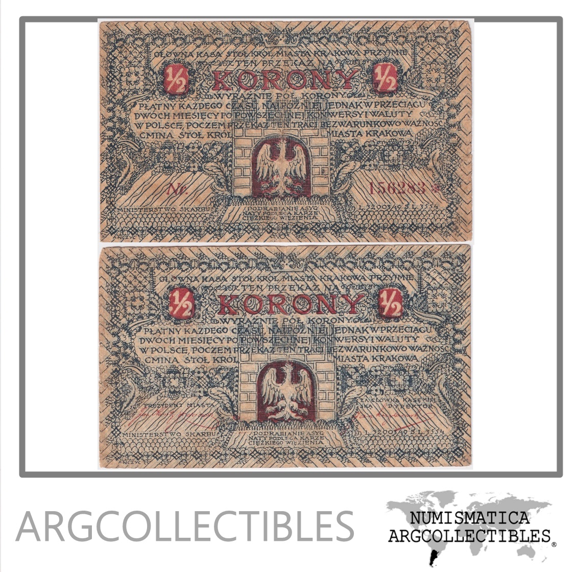 Polonia Billete 1/2 Corona 1919 Notgeld Crakovia VF+
