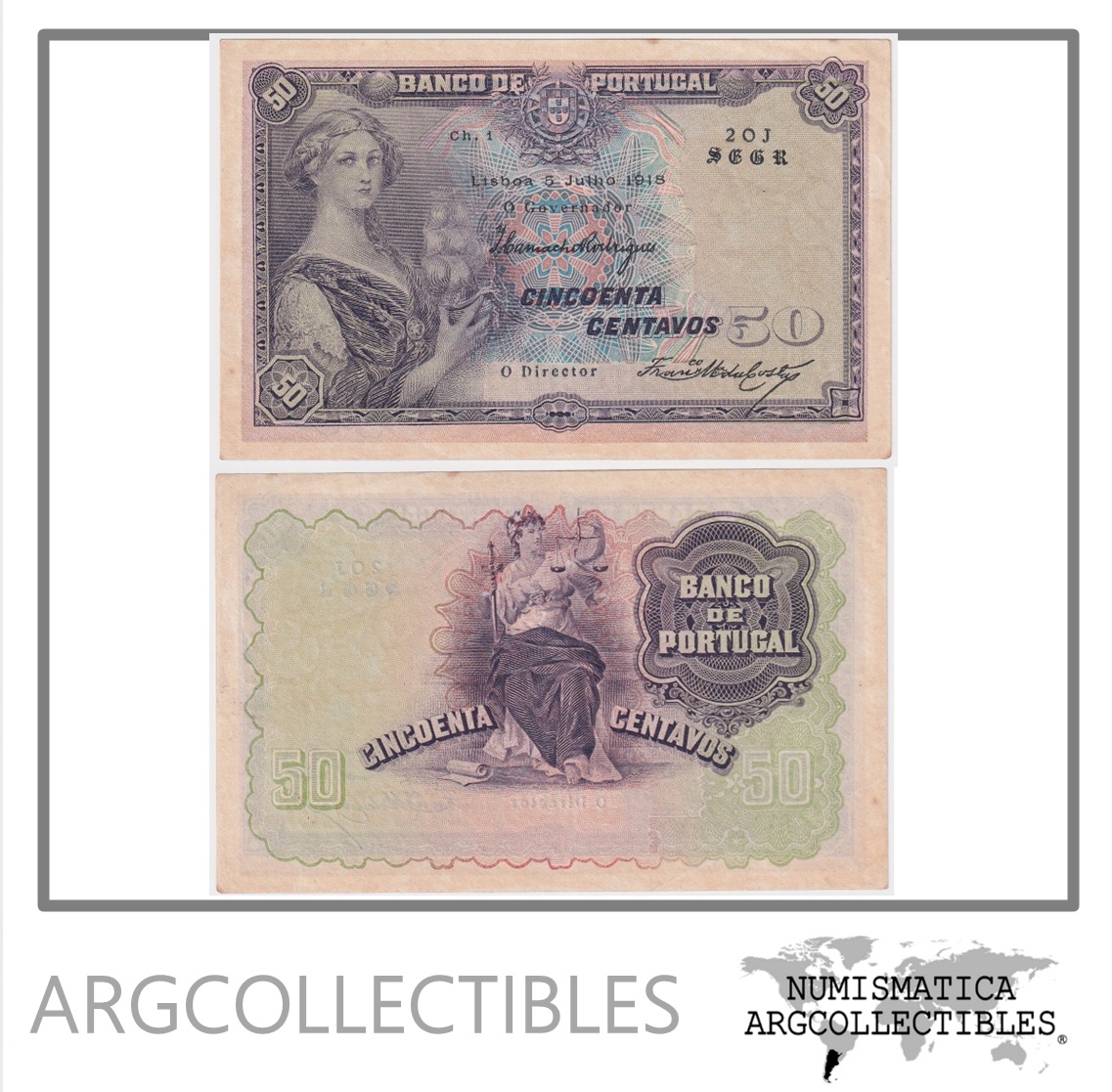 Portugal Billete 50 Centavos 1918 P-112 XF+