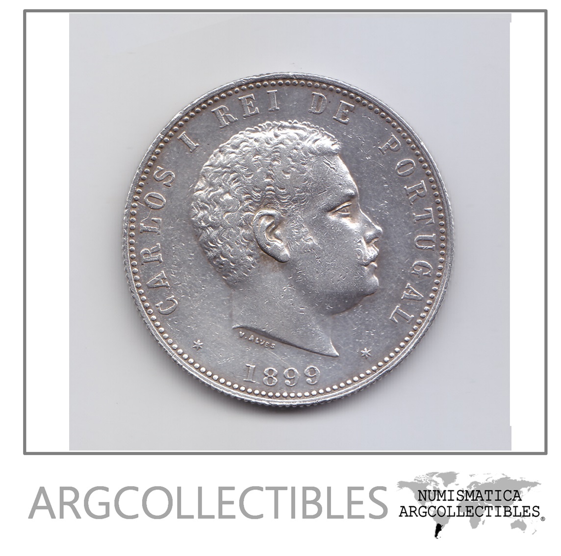 Portugal Moneda 1.000 Reis Plata 917 Año 1899 Carlos I Km-540 Vf+