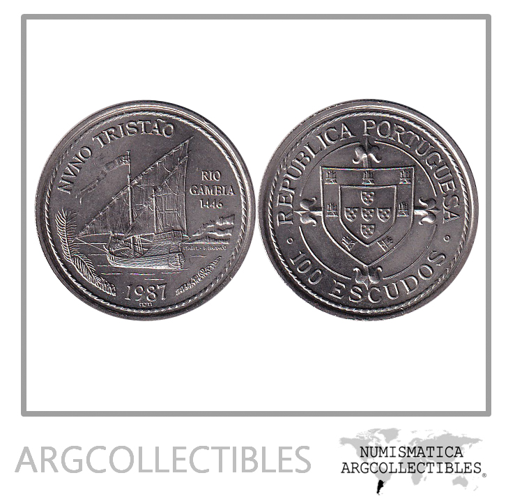Portugal Moneda 100 Escudos 1987 Km-640 Nuno Tristao UNC