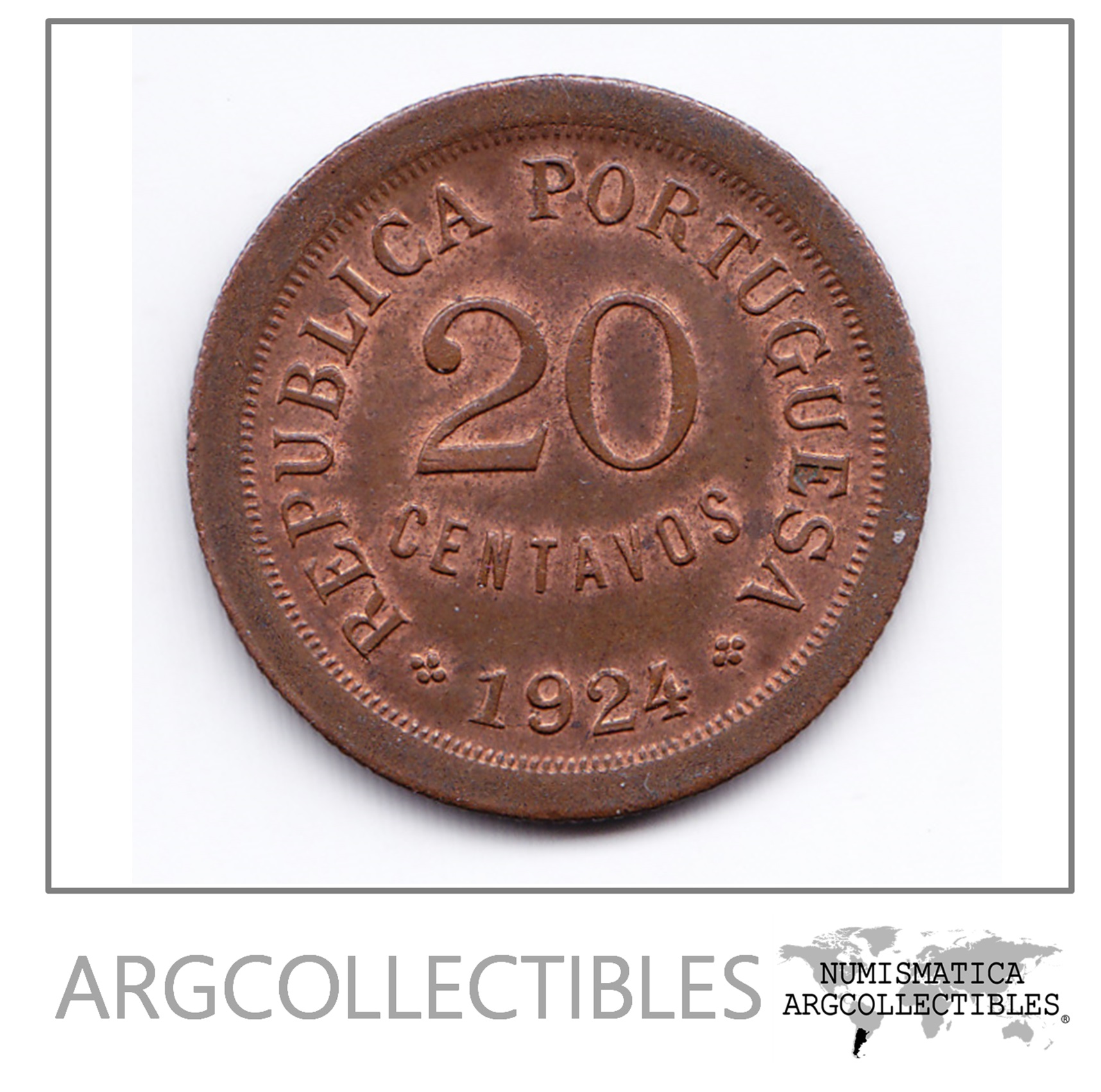 Portugal Moneda 20 Centavos Bronce 1924 Km-574 Condicion Au