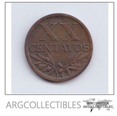 Portugal Moneda 20 Centavos Bronce 1944 Km-584 Vf+