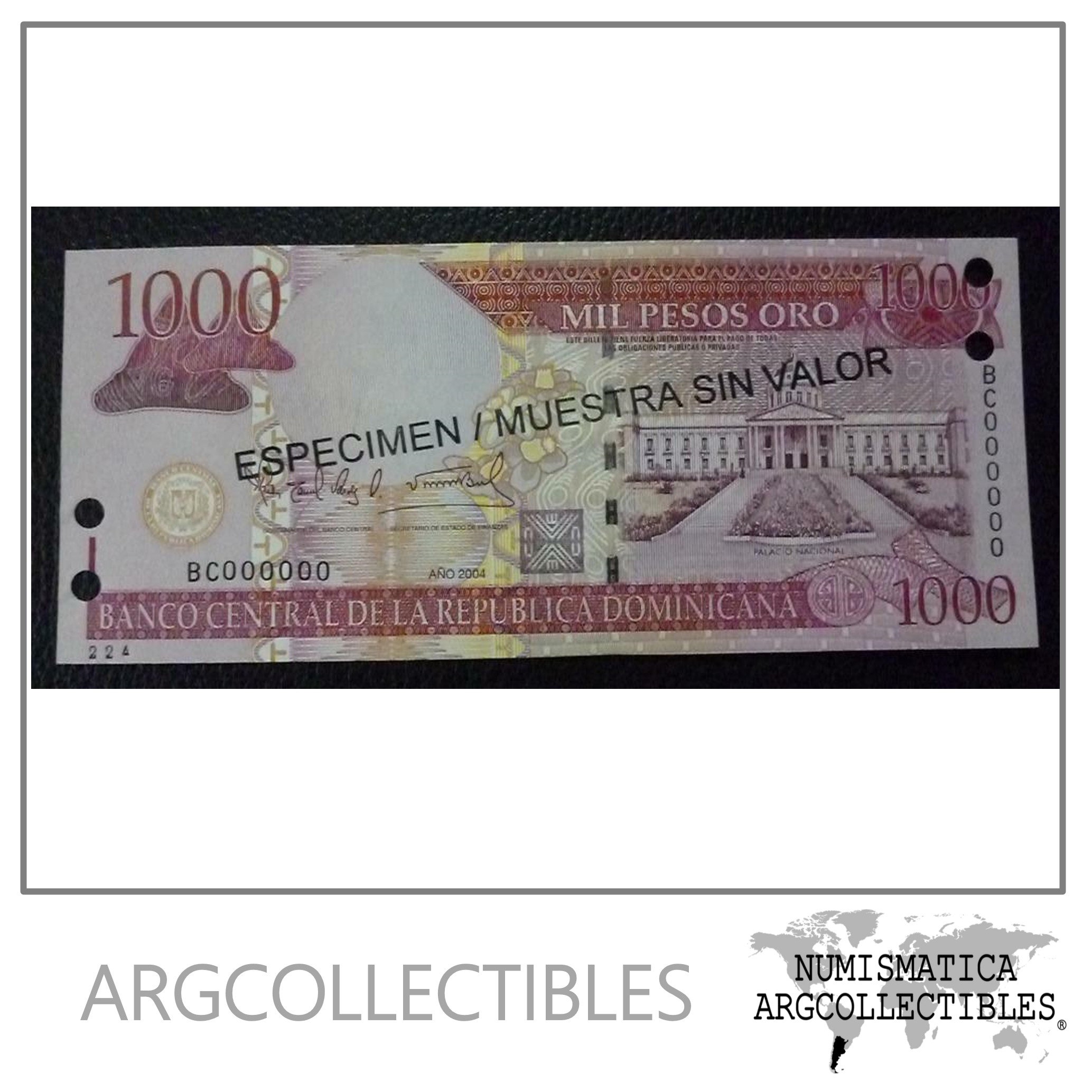 Republica Dominicana Billete 1000 Pesos, Pick 173s UNC 2004 (Especimen)