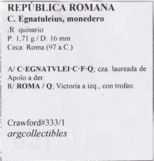 Republica Romana Moneda AR Quinario 97 a.c Egnatuleius, Monedero Crawford-333/1