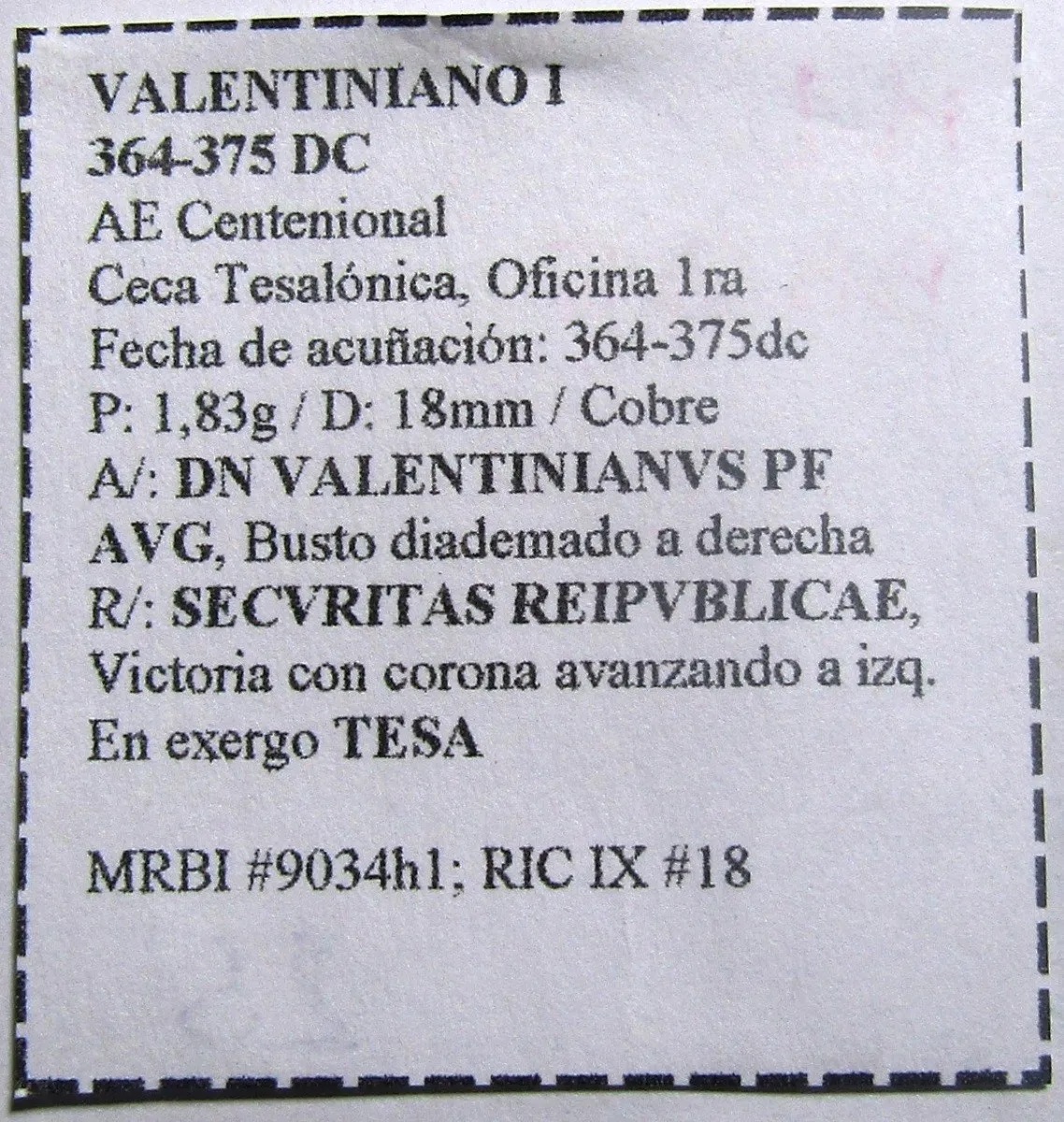 Roma Emperador Valentiniano I Moneda Ae Centenional Año 364/75 Dc Ceca Tesalónica F12