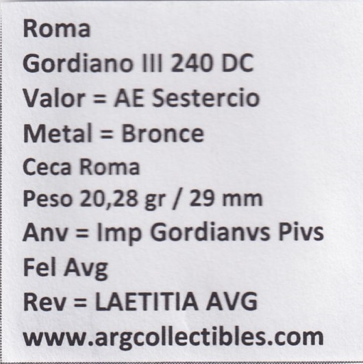 Roma Moneda AE Sestercio 240 D.C Gordiano III
