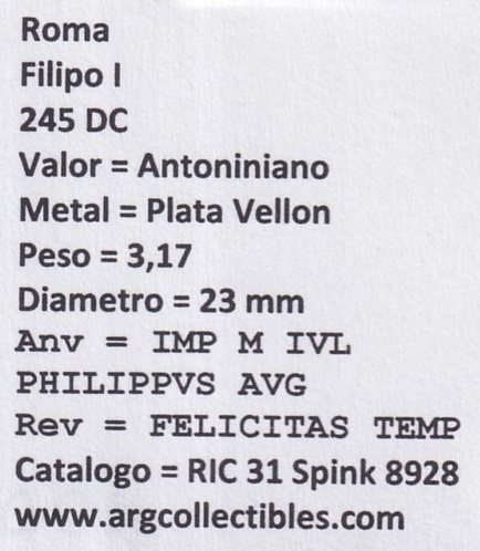 Roma Moneda Antoniniano 245 DC Filipo I Plata RIC-31 Spink-8928