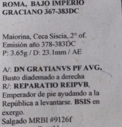 Roma Moneda Maiorina Año 378 Dc Ceca Siscia Emperador Graciano Aaa3