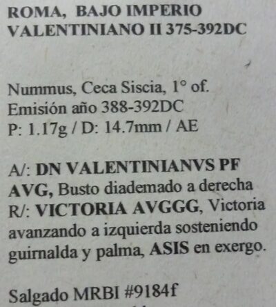 Roma Moneda Nummus Del Emperdor Valentiniano Ii Año 388 Dc Ceca Siscia Aa22
