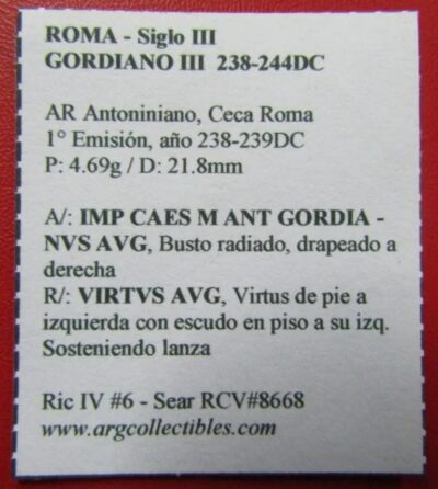 Roma Moneda Plata Ar Antoniniano Emperador Gordiano Iii Año 238 Dc Bb94