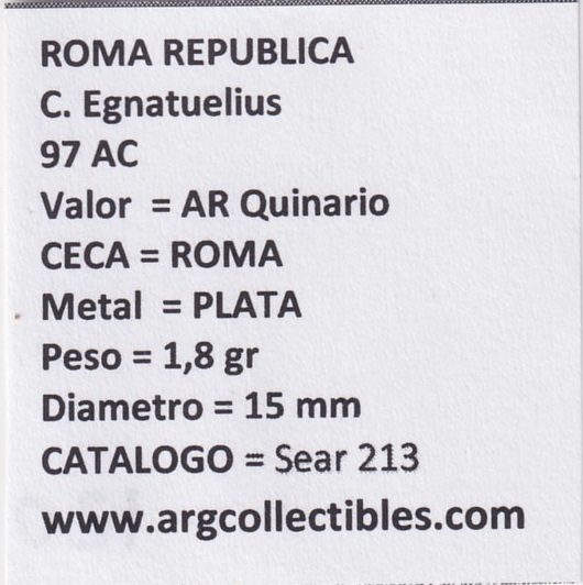 Roma Republica Moneda AR Quinario 97 a.c C.Egnatuelius Sear-213